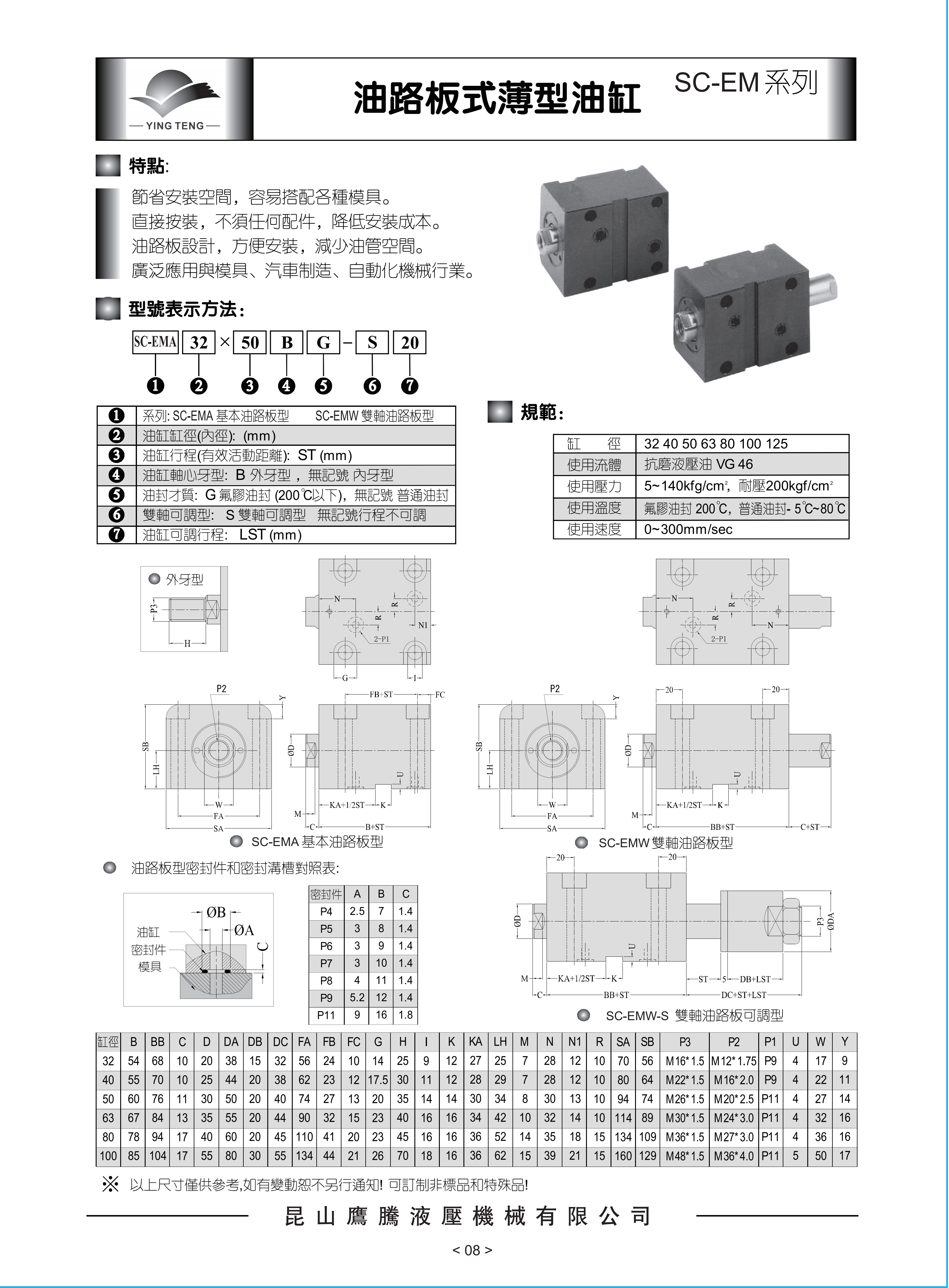 - 耐高温/耐腐蚀油缸 - SC-EMA